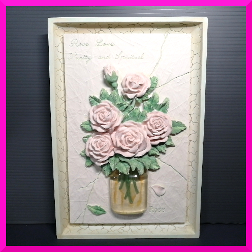 > 即決美品 バラの花束 壁掛け アート ピンクローズ パステル調 ウォールプレート インテリア雑貨 オブジェ おしゃれ インテリアプレート zak