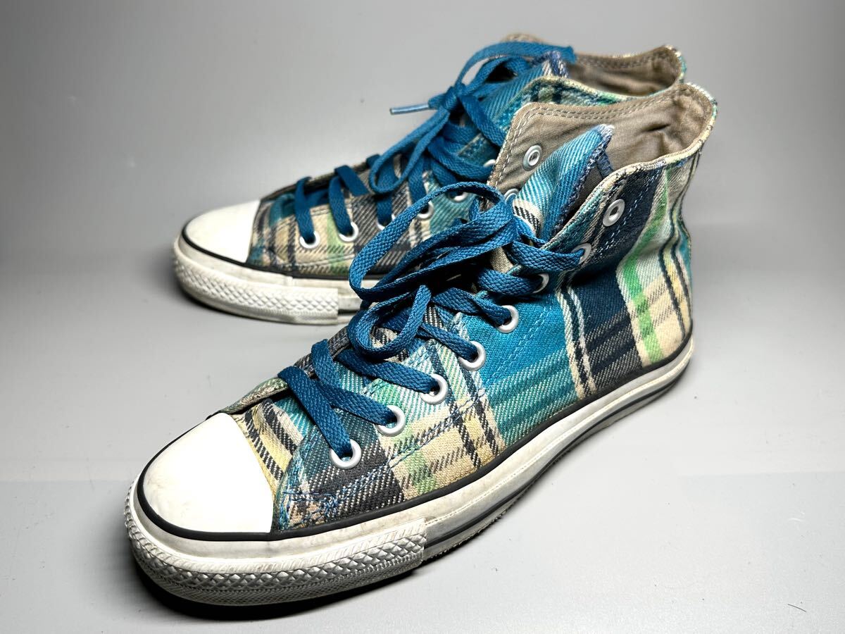 > 【即決】CONVERSE 25.5cm ハイカットスニーカー コンバース US7 オールスター ALL STAR 青 チェック ブルー スニーカー カジュアル くつ