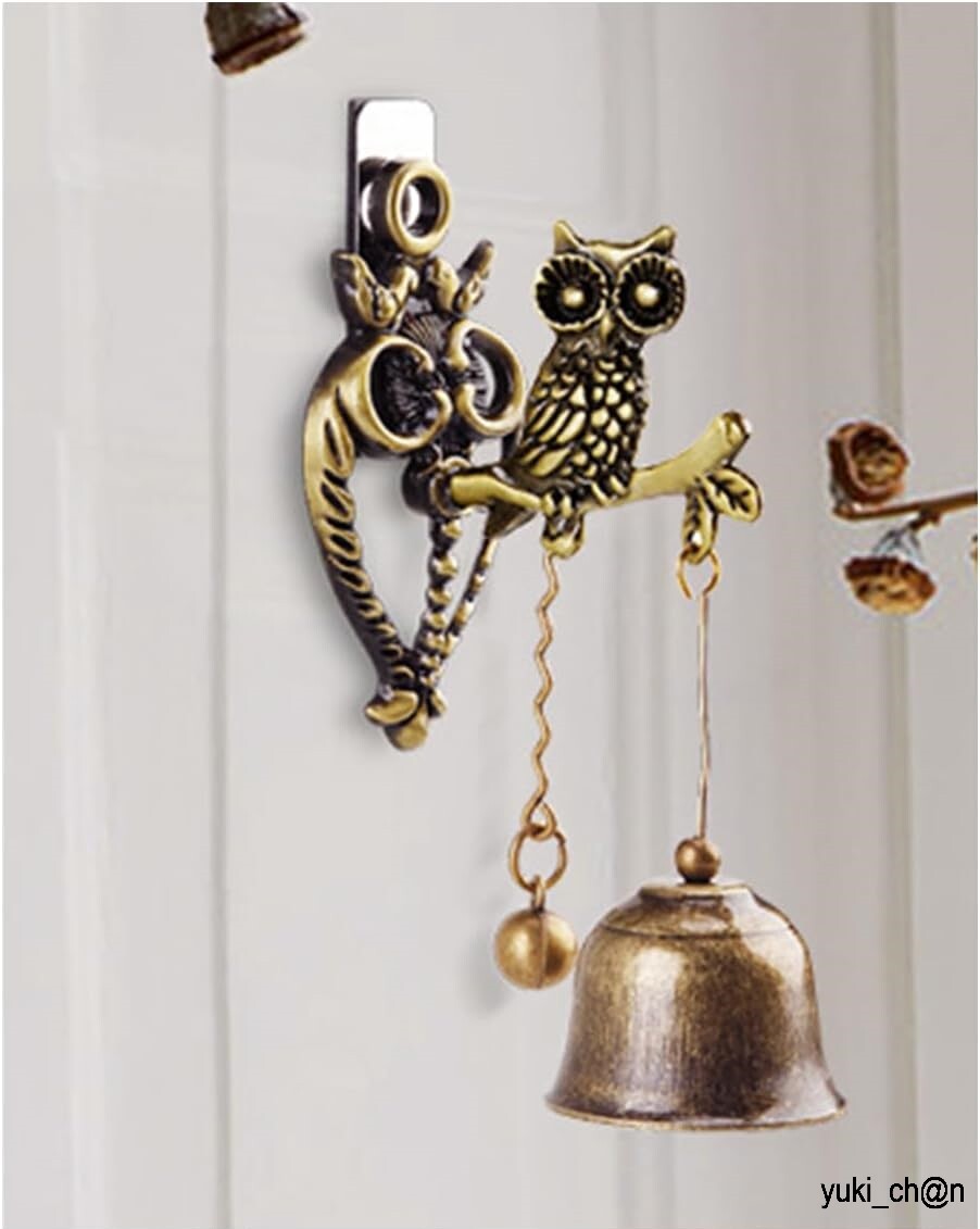 - ドアベル アンティドアベル 玄関 ドア用 鈴 アンティーク調 磁石 風鈴 取付簡単 バー 飲食店 冷蔵庫ドア 壁掛け 綺麗な音 縁起物 梟 不苦労