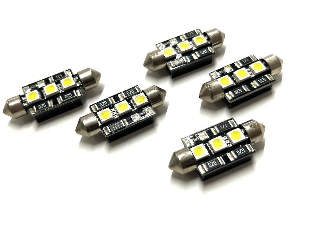 > G596 両口金タイプ LED 3連 T10 41mm 5個セット ルームタイプ 白色 舟型 カーテシ ナンバー灯 ラゲッジランプ ドアランプ