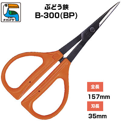 > ぶどう鋏 チカマサ 近正 ぶどう手入れ鋏 B-300(BP) ぶどう手入れはさみ 摘粒 収穫 剪定 房作り 摘心 オレンジ色 ぶどう農家 日本製