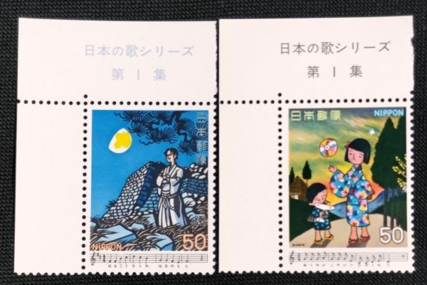 - [24102307]【日本の歌シリーズ・第1集】単片2種 タイトル付「荒城の月・夕やけこやけ」50円×2 1979年発行 美品