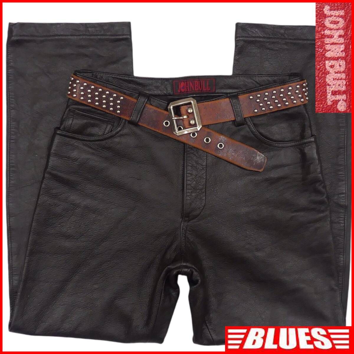 > 即決★JOHN BULL★XL レザーパンツ ジョンブル メンズ 黒 本革 ライダースパンツ 本皮 パンクロック ライディング ツーリング