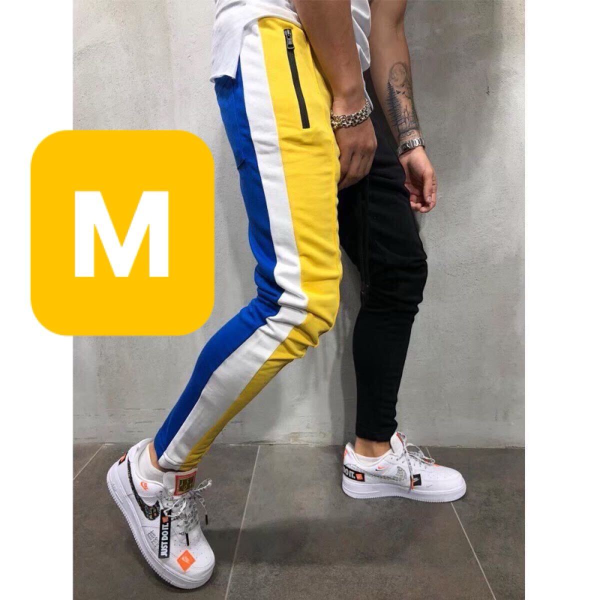 - ラインパンツ ジョガーパンツ ストレッチ ツートン トラックパンツ トレンド ストリート 映え 黒 黄色 青 M