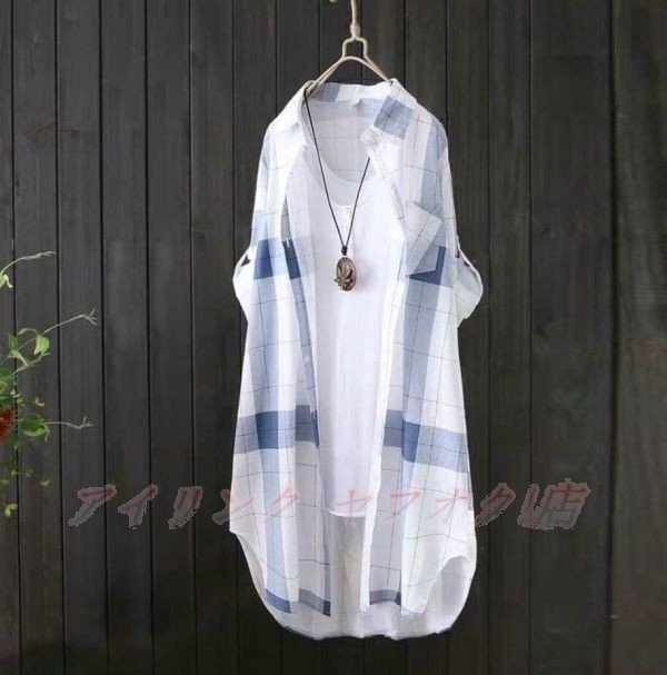 > ☆新品サイズ選択可 秋 ナチュラル 素敵な チェック柄 お洒落 シック ゆったり 大きいサイズ 長袖 シャツカーディガン ブルー