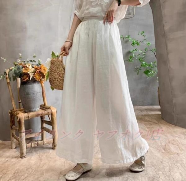 - ☆新品サイズ選択可 ワイドパンツ レディース ガチョウパンツ ボトムス 体型カバー フレアパンツ ロングパンツ ホワイト
