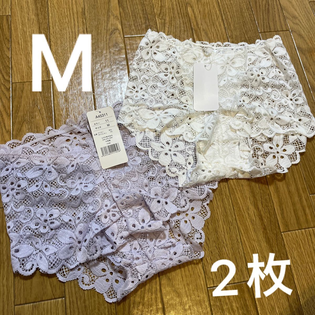 - ♪♪⑩新品未使用タグ付き☆レース ショーツ2枚組☆薄いパープル、ホワイト☆Mサイズ