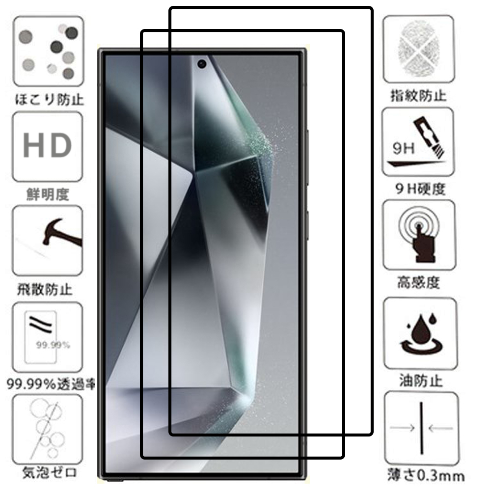 - 黒 2枚入り Galaxy S24 Ultra 5G ガラス フィルム SC-52E SCG26 ギャラクシー 画面 保護 スクリーン カバー シール シート 頑丈 Film 9H