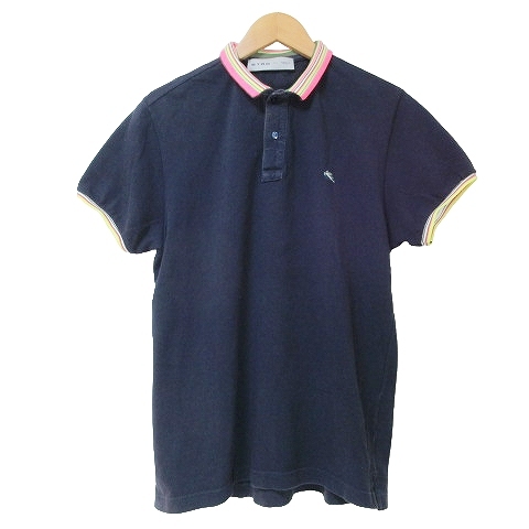 - エトロ ETRO ポロシャツ 半袖 鹿の子 ライン ワンポイント M 紺 ネイビー IBO58 X メンズ