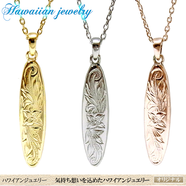 > ★人気★ハワイアンジュエリー★アレルギー&温泉&海水浴OK★ステンレスネックレス★ピンクゴールド&ゴールド&シルバー&サーフボード