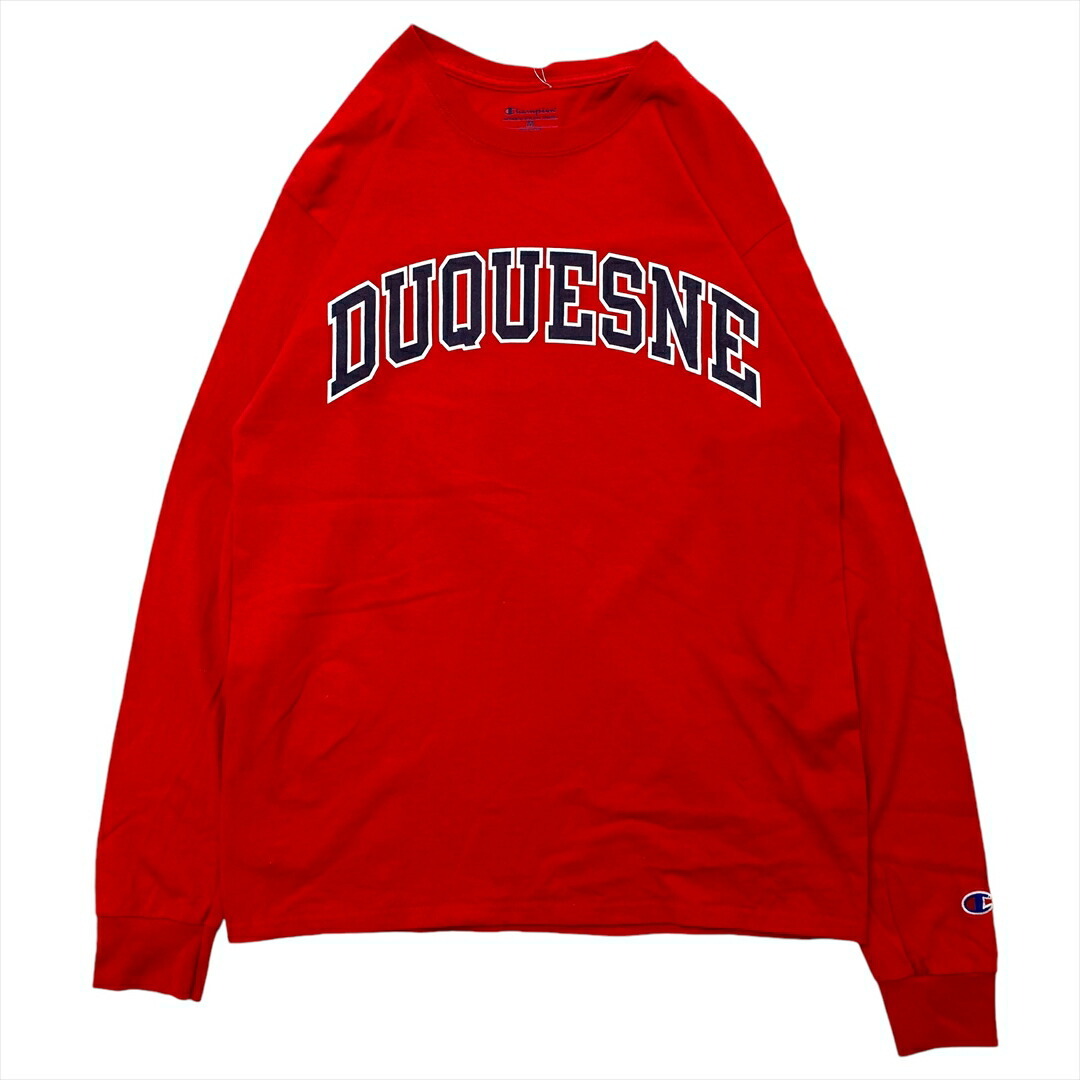> チャンピオン デュケイン大学 Tシャツ 長袖 レッド Champion 古着 メンズ M カレッジ アメカジ クリーニング済み