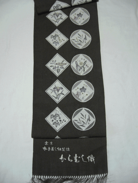 > ☆【訳あり品】 未仕立 からむし織 八寸帯 麻100% 本手差し紅型染! 07510