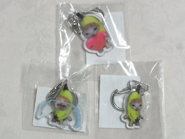 - 猫ミーム バナナ猫 ばなな猫 ストラップ アクリルキーホルダー 3種3個まとめて