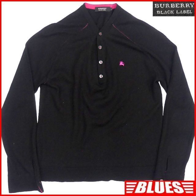 - 即決★BURBERRY BLACK LABEL★メンズM 廃版 ニット セーター バーバリーブラックレーベル 2 黒 ピンク 三陽商会正規 ナイト刺繍