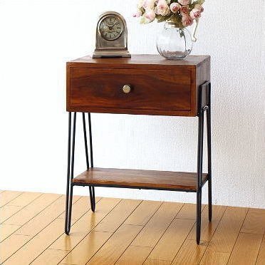 > サイドテーブル 木製 アイアン おしゃれ ベッド ソファ 棚付き シーシャムボックスサイドテーブル A 送料無料(一部地域除く) kan2285