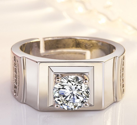 - 指輪 pt950 プラチナコーティング メンズ ダイヤモンド キュービックジルコニア 輝く 結婚式 リング フリーサイズ
