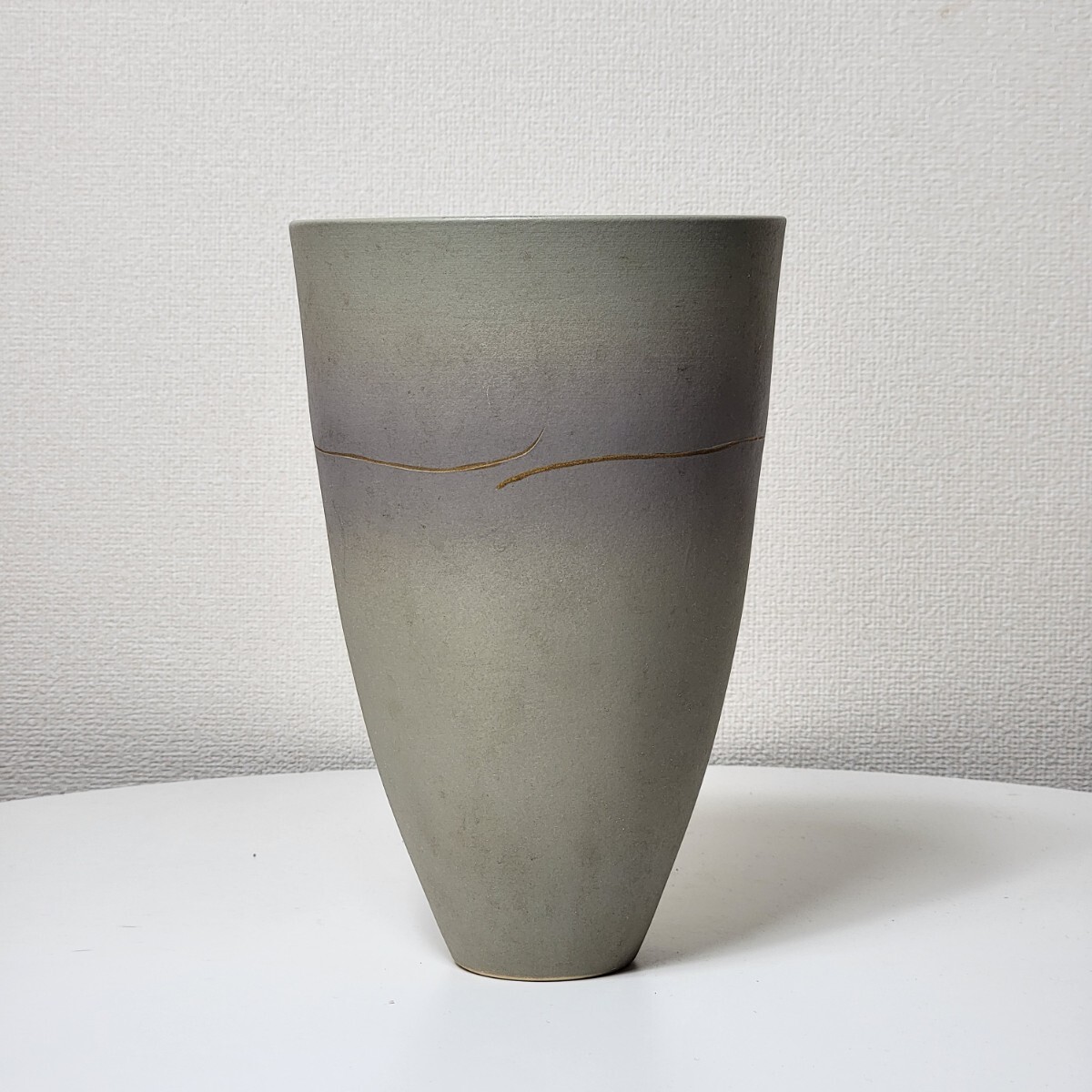 - いけばな 池坊 作家陶器 華道師範所蔵品 Japanese Vintage Style Flower Vase 和モダン デザイン フラワーベース 花瓶 花器 110206
