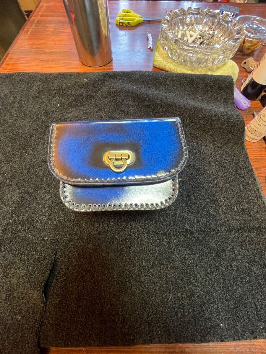 - タジマセフニックス等アドバンガラス革ブルー小物入れポーチ