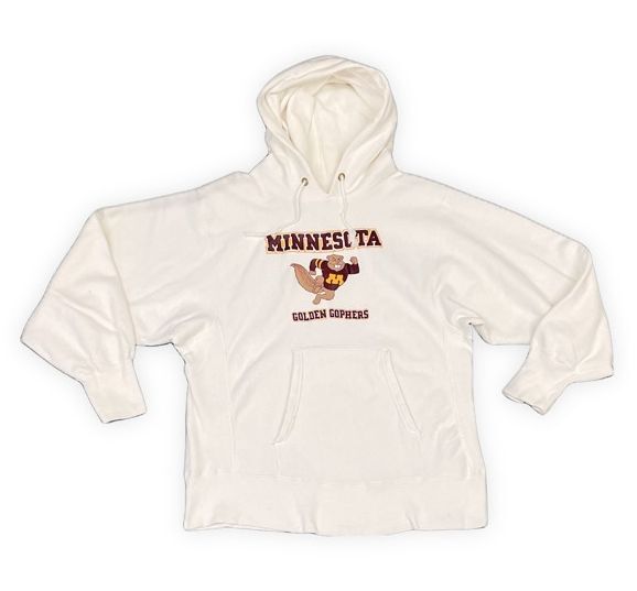 > 80’s 米国製 チャンピオン リバースウィーブ パーカー Champion REVERSE WEAVE HOOD ミネソタ MINNESOTA マスコット 3段 白 M [ta-1276]
