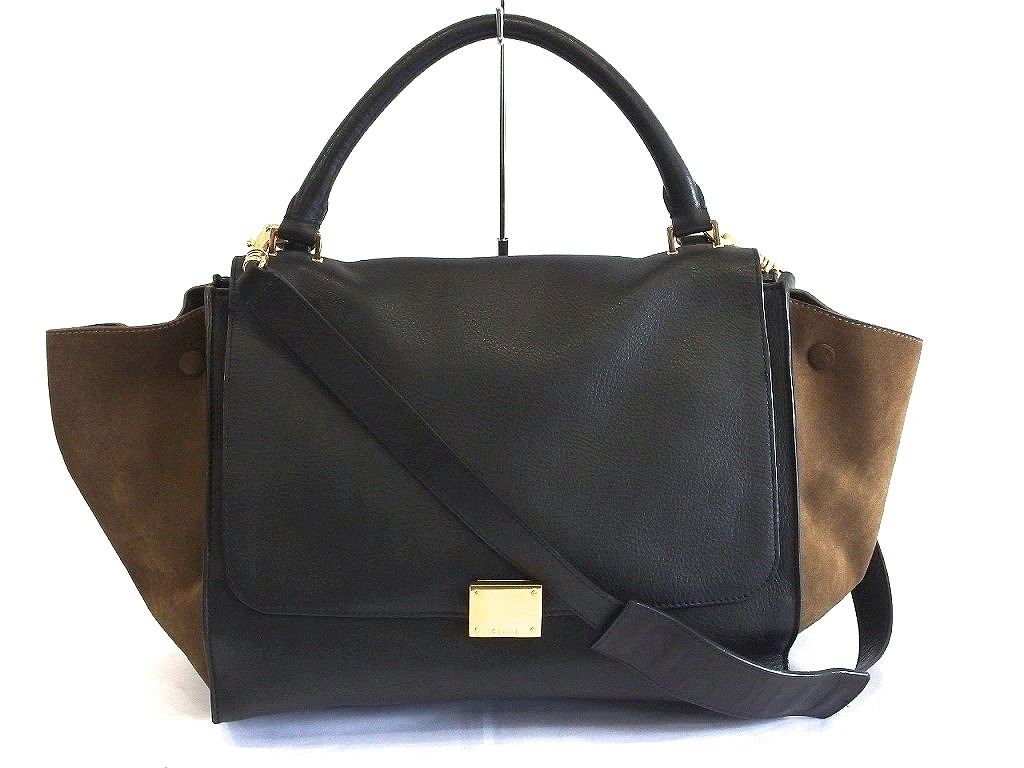 > CELINE セリーヌ トラペーズ ミディアム 2WAYショルダーバッグ ※ファスナー内側剥がれ有 - ブラック/ブラウン