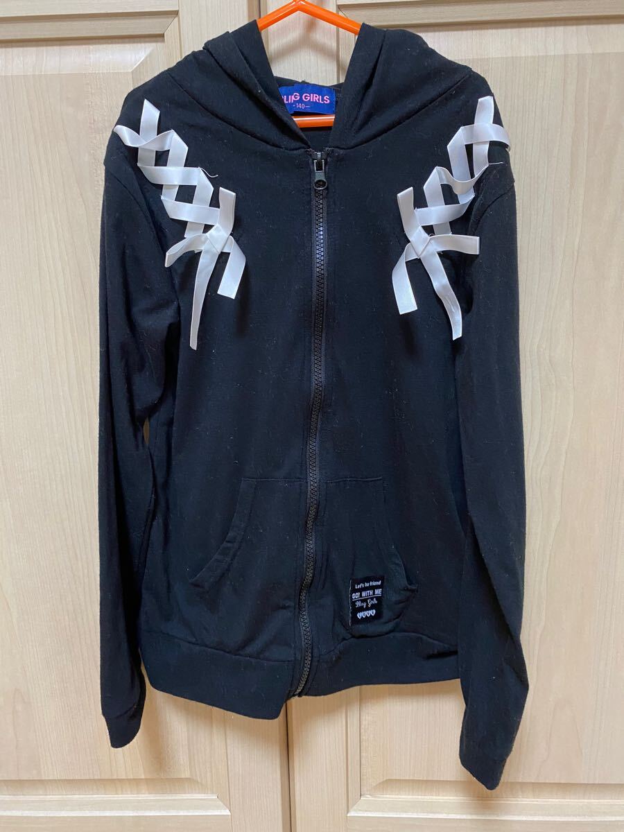 - 中古◎黒 cuteリボン◎長袖パーカ 薄手◎140