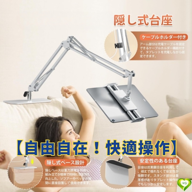 > 【自由自在!快適操作】タブレット スマホ スタンド 2色展開 アーム 折り畳み式 隠し式台座 360度回転 自由調整 快適 多機能 携帯性