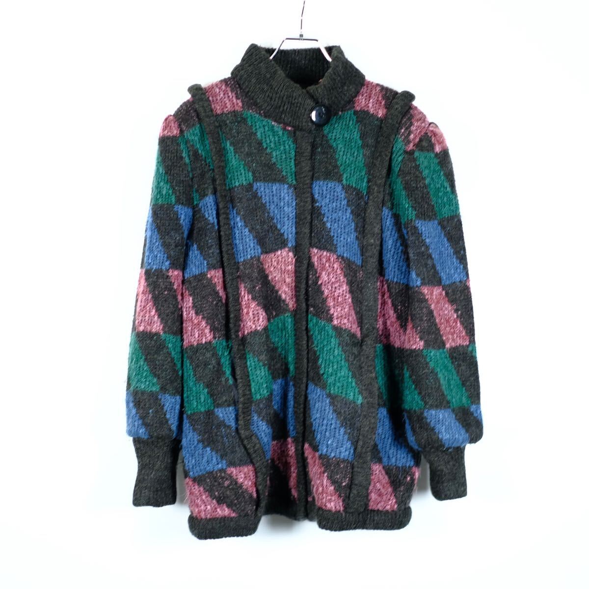- 1970s ビンテージ モダンカラフル ニットジャケット デザイン アート 古着 総柄 ブルゾン カーディガン セーター