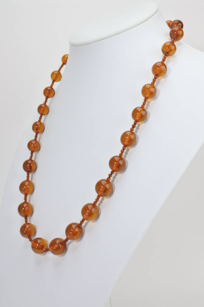 - 日本製 *お洒落 高級K18天然琥珀ネックレス 最大珠 径13.5mm 29g 60㎝ 未使用保管品