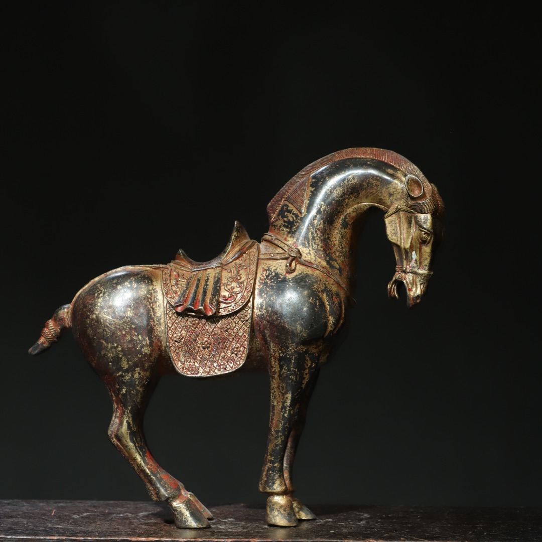 - ◆蔵出◆古美術 中国古玩 漢代 古銅製 勾頭馬 細密細工造 置物 擺件 古賞物 時代物 A19