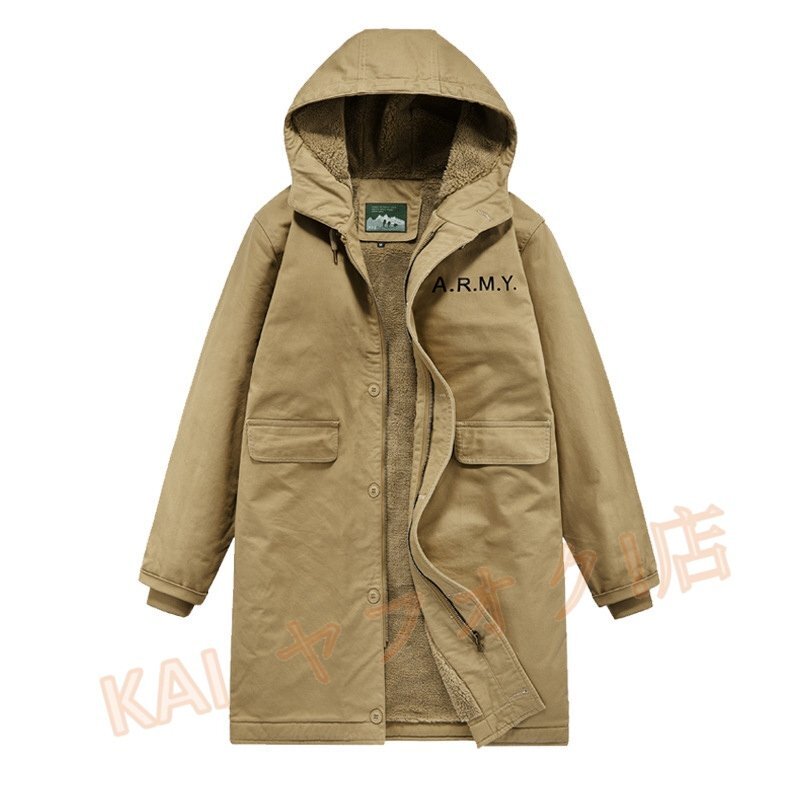 - ☆新品 ロングコート モッズコート 裏フリース裏ボア メンズ アウター ミリタリー フード付き ヴィンテージ 冬用 カーキ 6XL