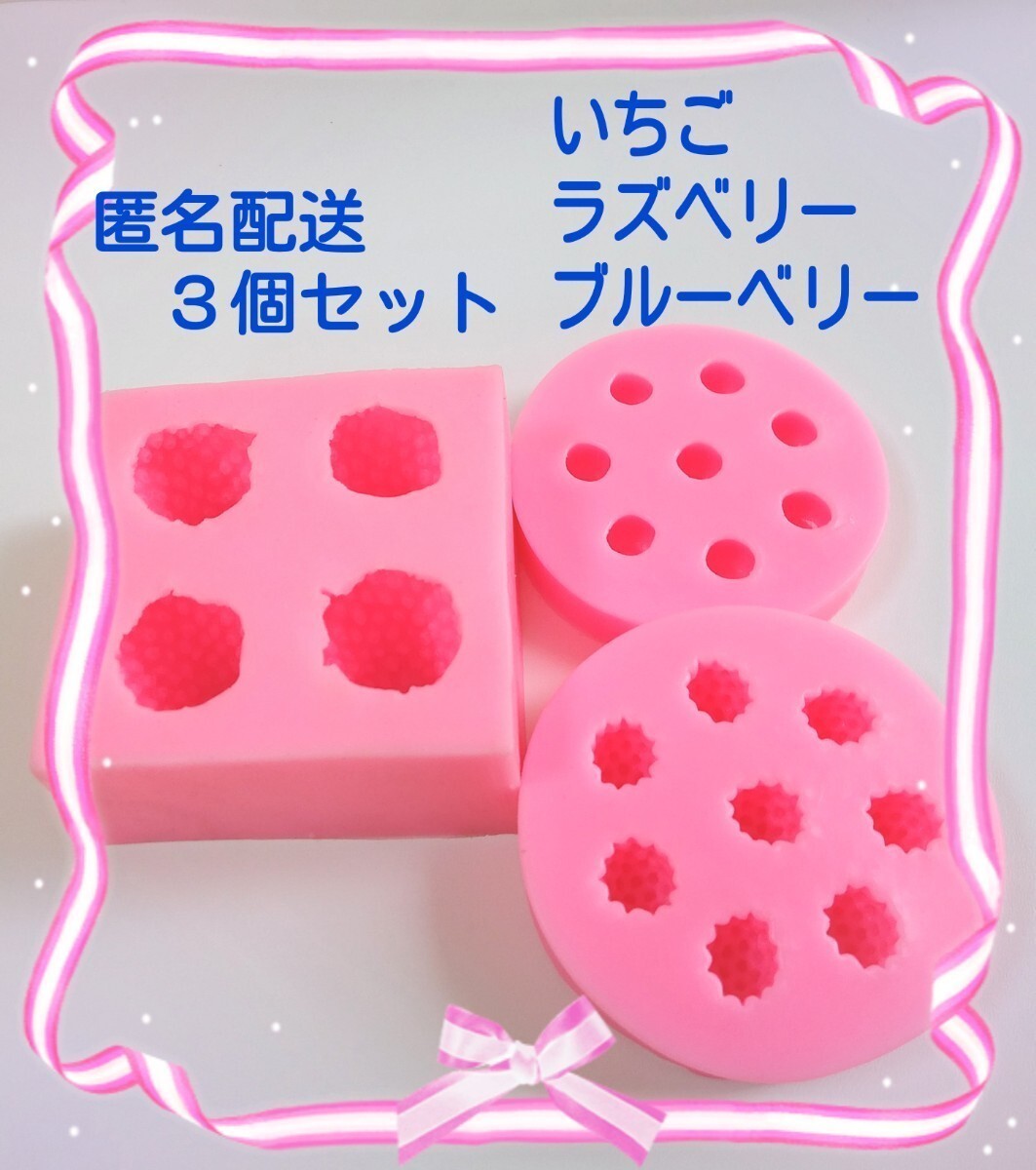 - いちご ラズベリー ブルーベリー イチゴ シリコンモールド シリコン型 キャンドル キャンドルモールド フェイクスイーツ 型 立体