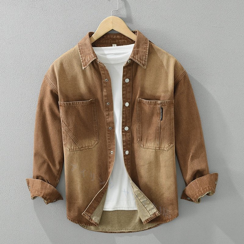 > ☆新品 デニムシャツ シャツジャケット ジージャン メンズ 長袖シャツ トップス ウエスタンシャツ トップス 珈琲色 M