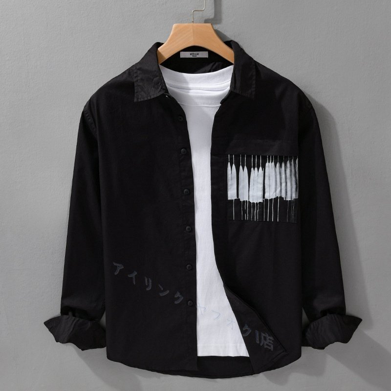 > ☆新品 トップス シャツジャケット 春秋 メンズ シャツ 長袖シャツ カジュアルシャツ コットンシャツ 黒 2XL