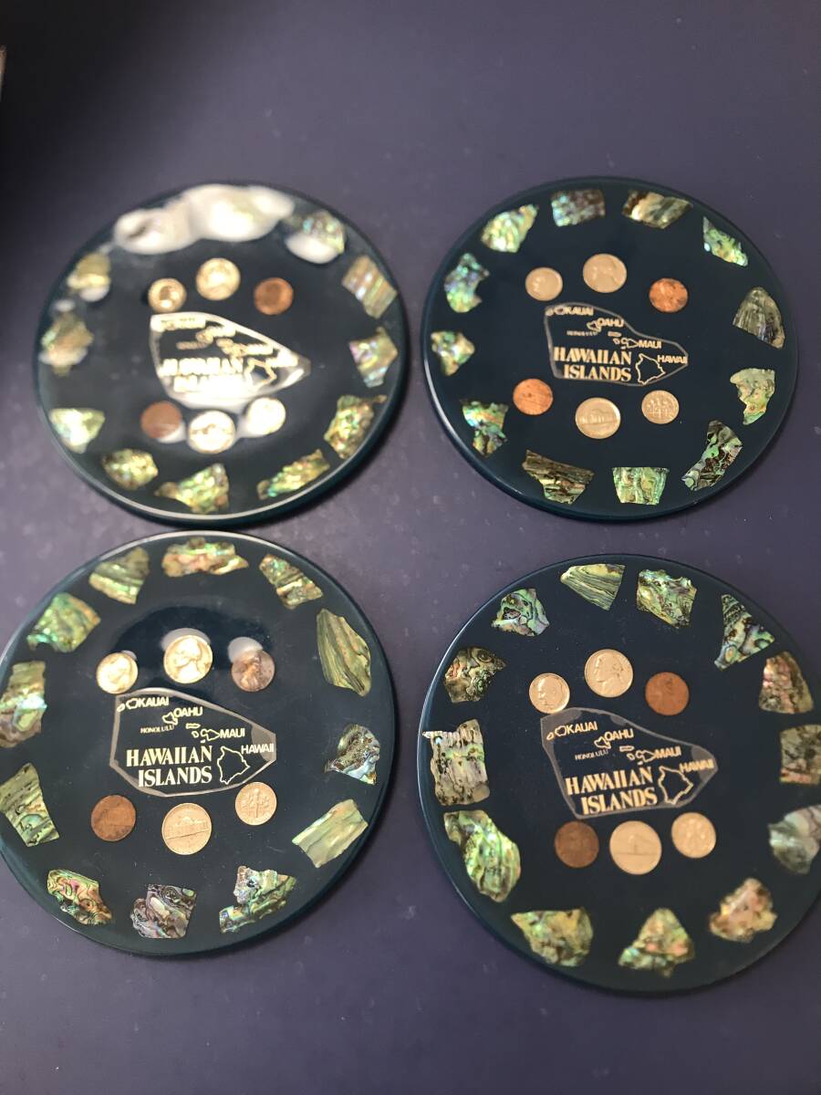 - hawaiian islands ハワイ諸島 古銭 皿 貝 など 4枚