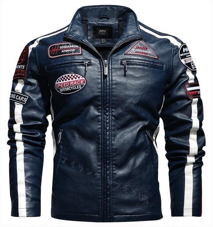 - 新品 秋冬新作 刺繍 厚手 裏起毛 メンズレザー ライダースジャケット バイクジャケット ジャンパー ブルゾン 3色選択可/S~3XLサイズ