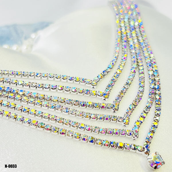 - 送料無料! 大粒! V字型 ネックレス 6連ライン エレガント アクセサリー パーティー 結婚式 ◇N-0033