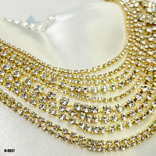 > 送料無料! キラキラ ゴールドネックレス ゴージャス 10連ライン エレガント アクセサリー パーティー 結婚式 ◇N-0027