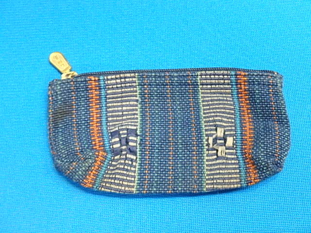 - n411y 沖縄 石垣島 みね屋 花織グマー ミンサー織 紺 コインケース 小銭入れ ファスナー 中古 (24-1010-1)