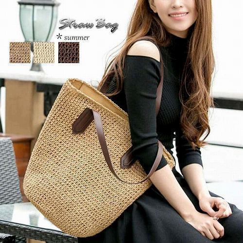 - かごバッグ レディース トートバッグ a4 ストローバッグ 夏 リゾート バッグ キャメルYWQ1045
