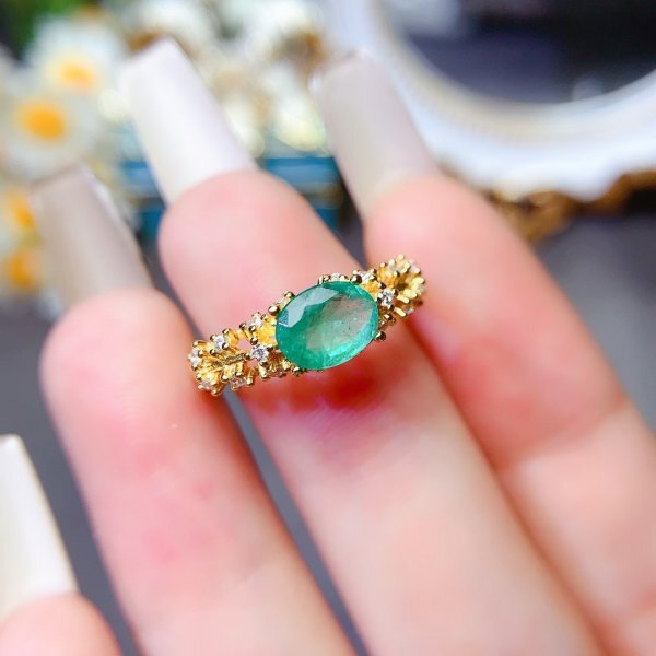 - 【証明書付き】女性用天然エメラルドリング、925スターリングシルバー、5x7mm、サイズ調節可能、最初の入札者様は開始価格で購入可能