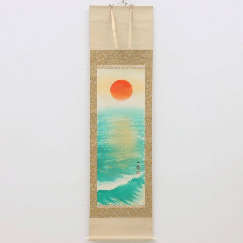 > KL16-9566[OTO]【真作】尾竹竹坡 掛軸 絹本 肉筆 彩色「旭波」落款 印有 合箱 日本画家 川端玉章・小堀鞆音門下 尾竹三兄弟