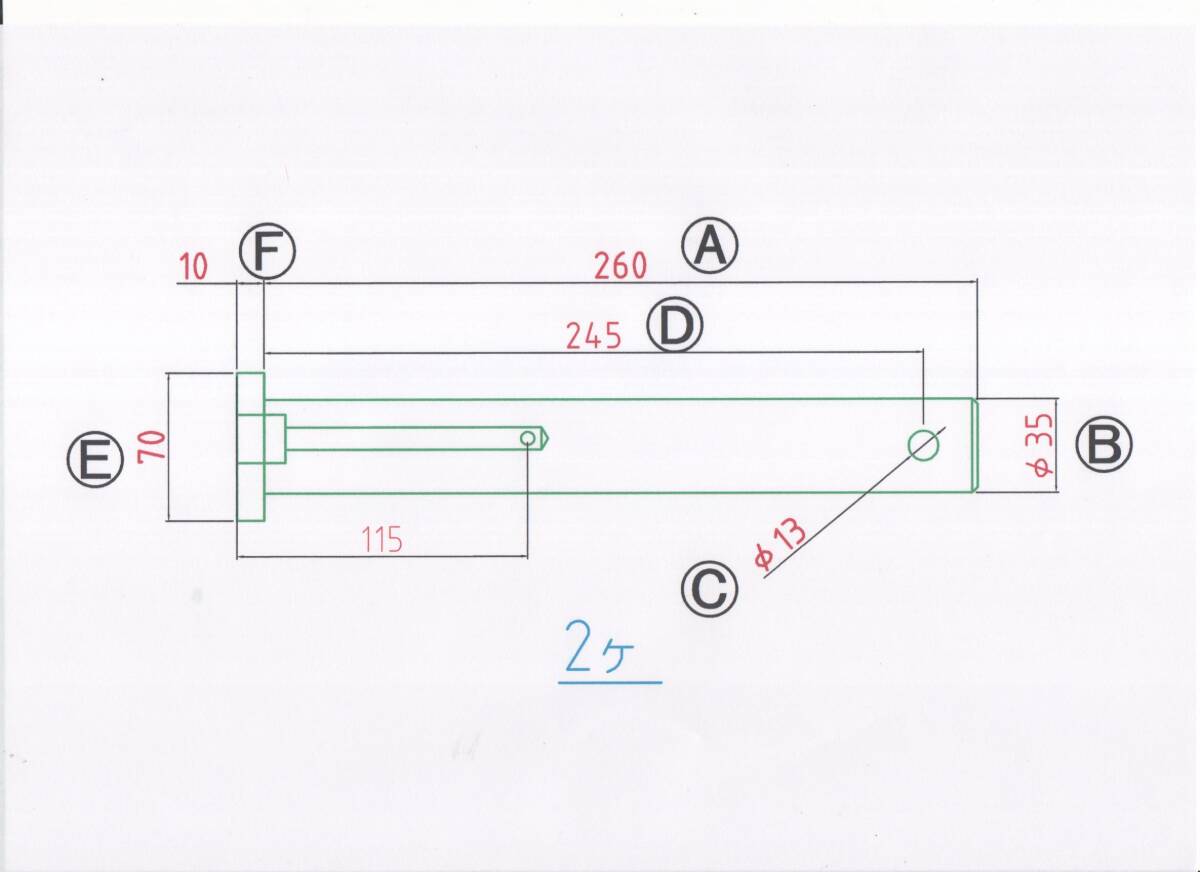 - NO913 φ35用 ツバ下260mm グリス穴付きバケットピン2本 / 止めカラー2個 セット