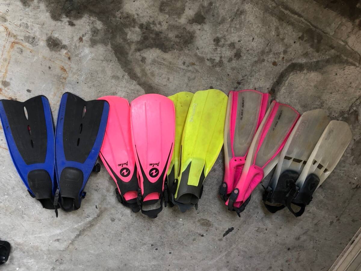 - USED(中古-スクール用品) フィン 5セット ブルー+ピンク+イエロー+レッド+スケルトン