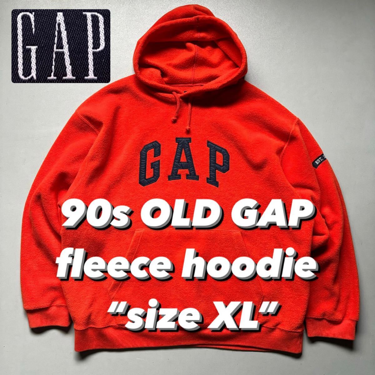 - 90s OLD GAP fleece hoodie “size XL” 90年代 オールドギャップ フリースフーディー パーカー オレンジ プルオーバー