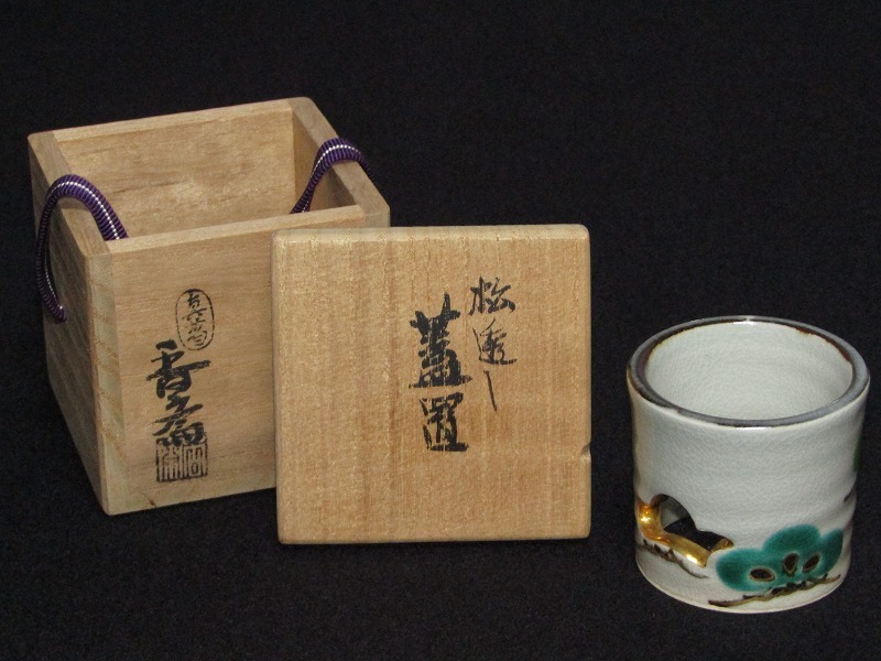 - KL18-8010[GGG] 真葛香斎 松透し 蓋置 共箱 色絵 金彩 茶道具