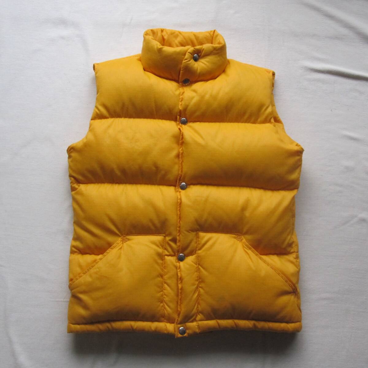 > ☆70s ノースフェイス ダウンベスト (XS) ゴールド / 茶タグ リップストップナイロン / 黄 / ヴィンテージ / ブルックスレンジ