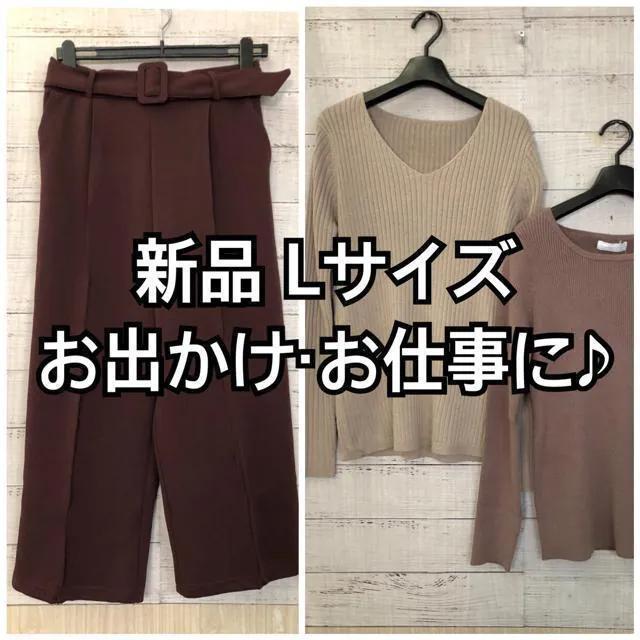 - 新品☆Lサイズ♪きれいめストレッチワイドパンツ+ニット2枚♪お出かけに☆p649