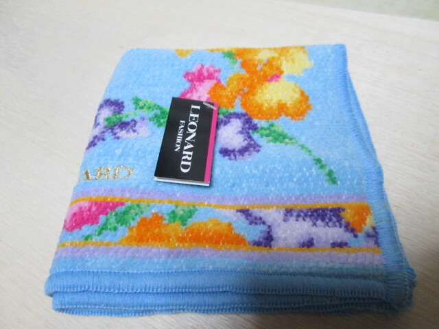 - ★LEONARD レオナール シュニール織 ハンカチ 未使用 ブルー★