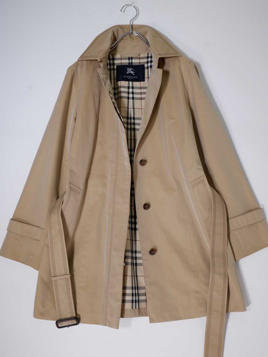 - BURBERRY LONDON/バーバリー ロンドン 裏地ノバチェック ベルト付きコットンギャバ ステッチデザインシングルコート [LCTA76433]