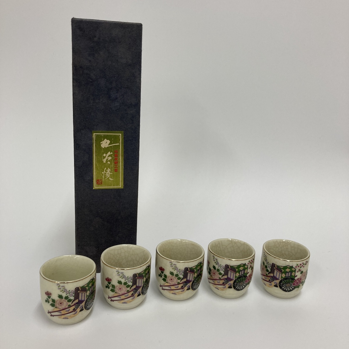 - 九谷焼 日本製 5客 酒器 陶磁器 猪口 和物 - r126